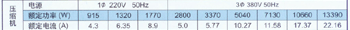 尺寸表